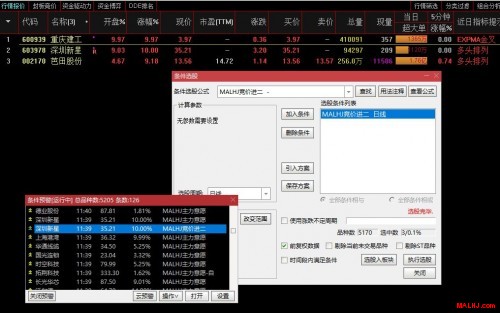 MALHJ主力意愿条件选股和预警效果图: